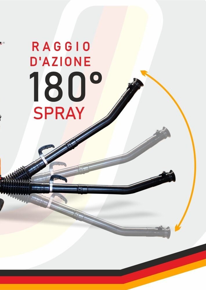 Grazie alla sua struttura e al tubo flessibile orientabile, l’atomizzatore offre un raggio d’azione ampio fino a 180 gradi, permettendoti di coprire superfici laterali e frontali in un solo passaggio. Questo ti consente di lavorare in meno tempo, con maggiore precisione e senza dover cambiare continuamente direzione.
