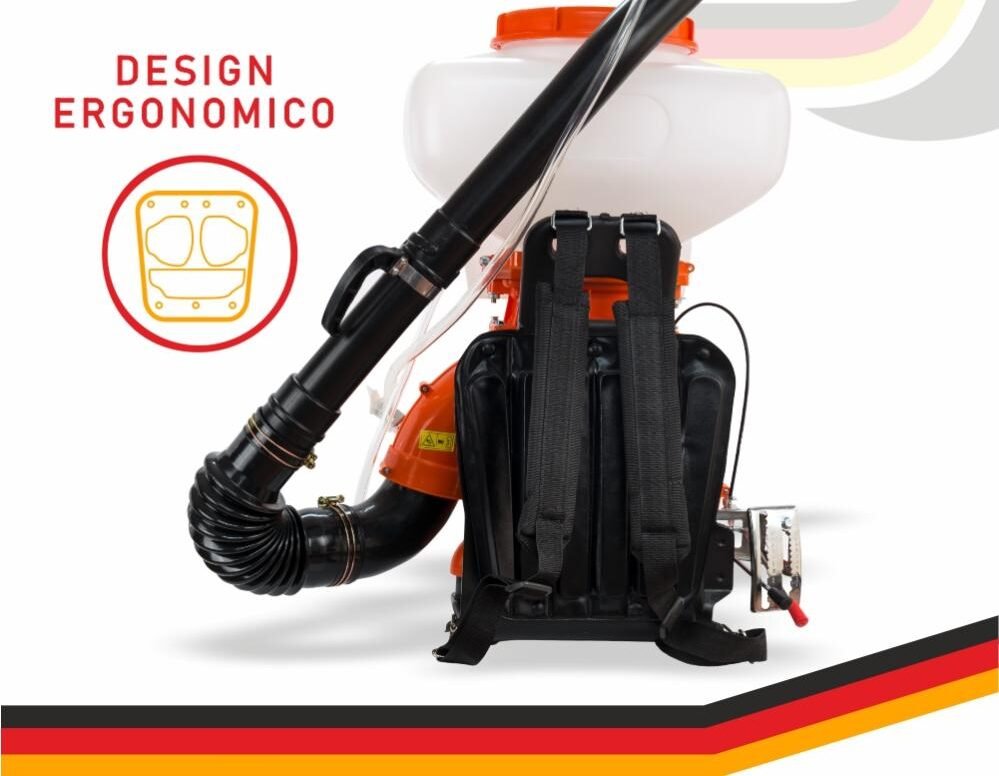 L’atomizzatore è progettato per essere portato comodamente a spalla, grazie alle cinghie regolabili da zaino e imbottite. Il peso si distribuisce in modo uniforme, riducendo la fatica e migliorando la postura. Così anche i lavori più lunghi diventano sostenibili.